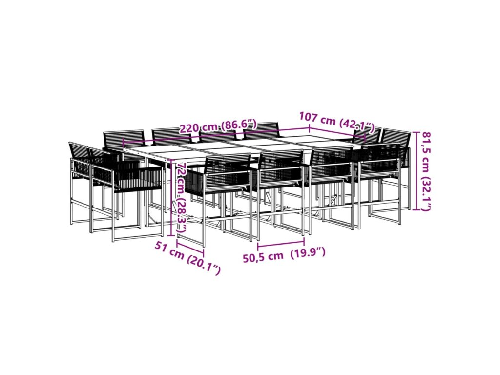 vidaXL 13-dielna záhr. jedálenská súprava s vankúšmi čierna polyratan