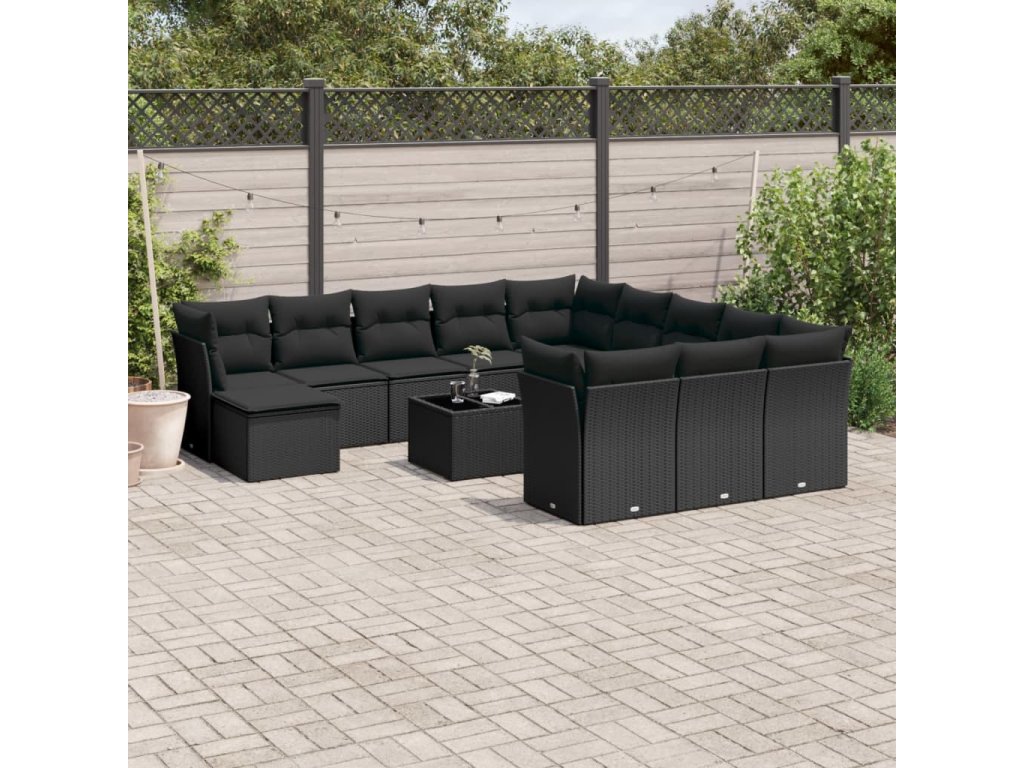 vidaXL 13-dielna záhr. jedálenská súprava s vankúšmi čierna polyratan