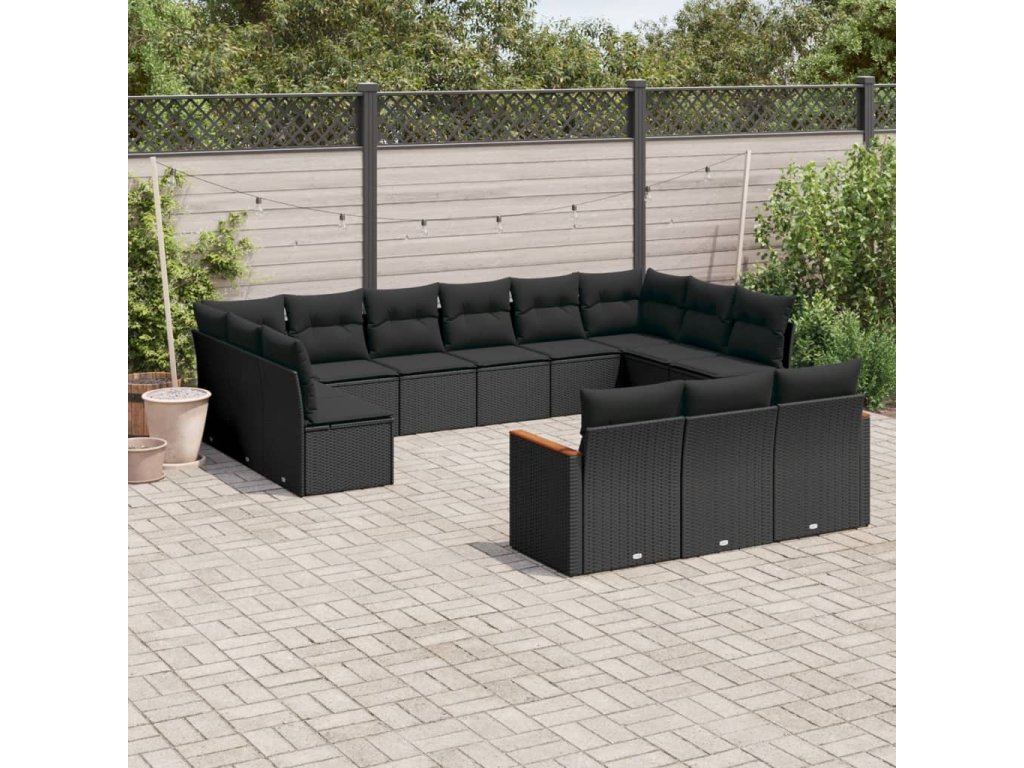 vidaXL 13-dielna záhr. jedálenská súprava s vankúšmi čierna polyratan