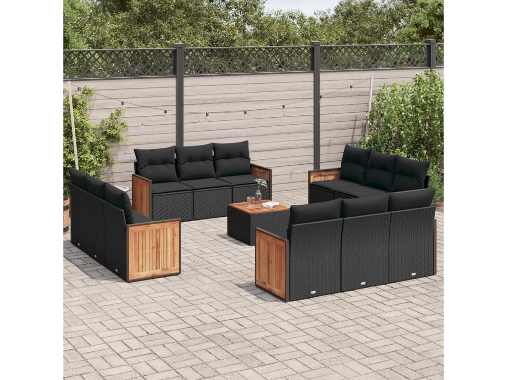 vidaXL 13-dielna záhr. jedálenská súprava s vankúšmi čierna polyratan