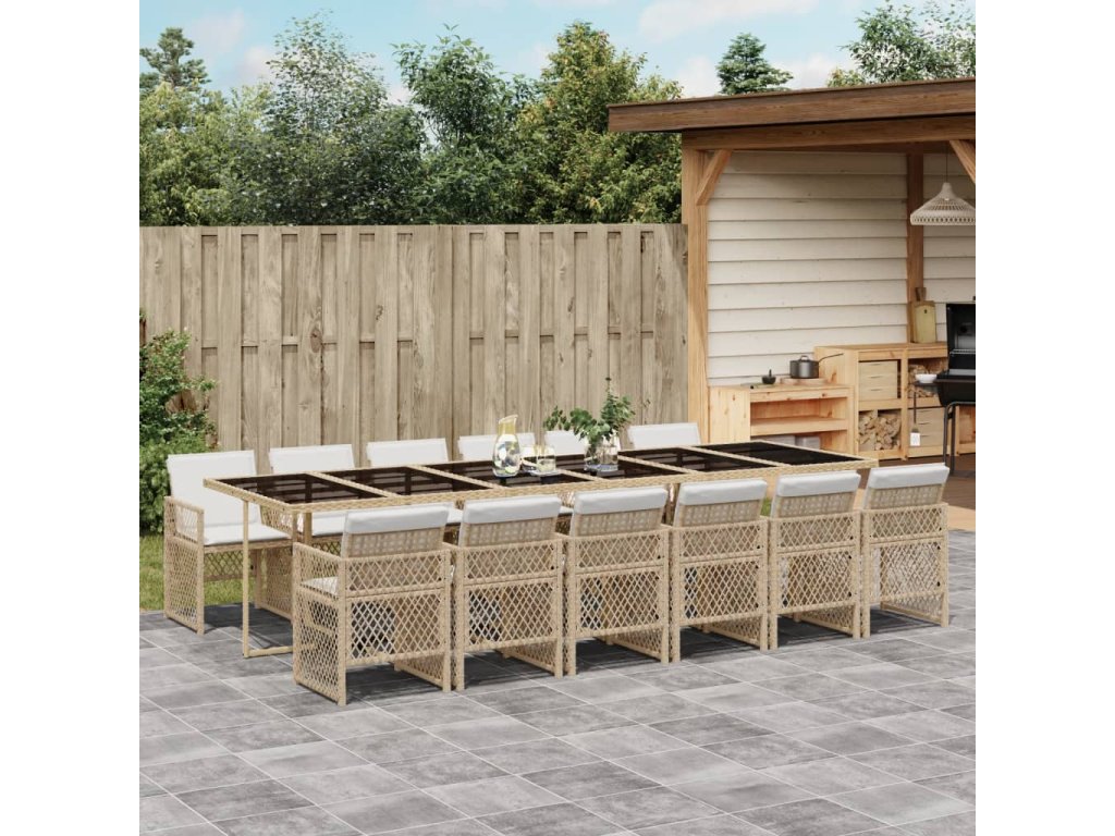 vidaXL 13-dielna záhrad. jedálenská sada vankúše béžová polyratan