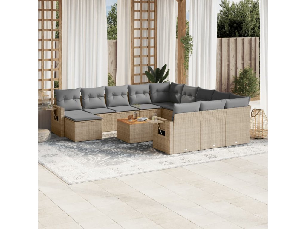 vidaXL 13-dielna záhrad. jedálenská sada vankúše mix béžovej polyratan