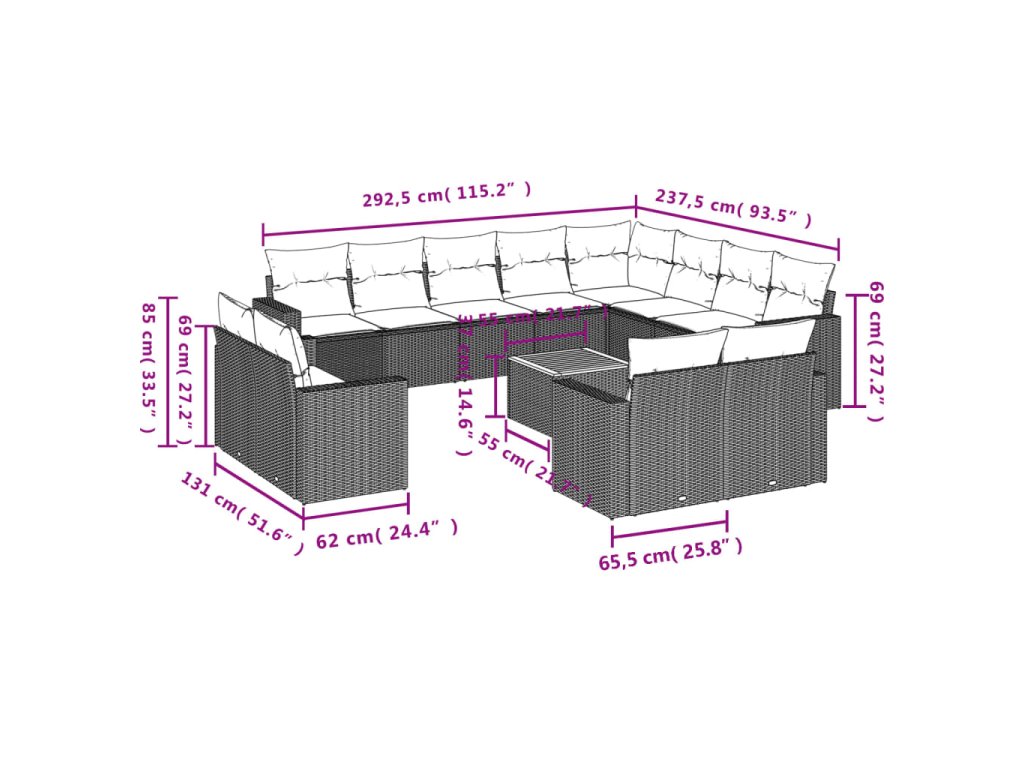 vidaXL 13-dielna záhrad. jedálenská sada vankúše mix béžovej polyratan