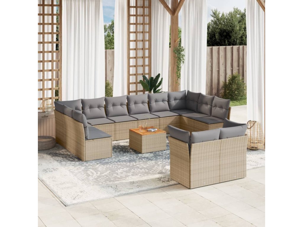 vidaXL 13-dielna záhrad. jedálenská sada vankúše mix béžovej polyratan