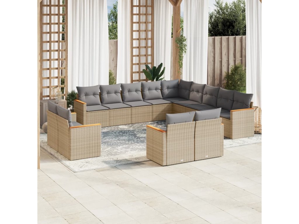 vidaXL 13-dielna záhrad. jedálenská sada vankúše mix béžovej polyratan