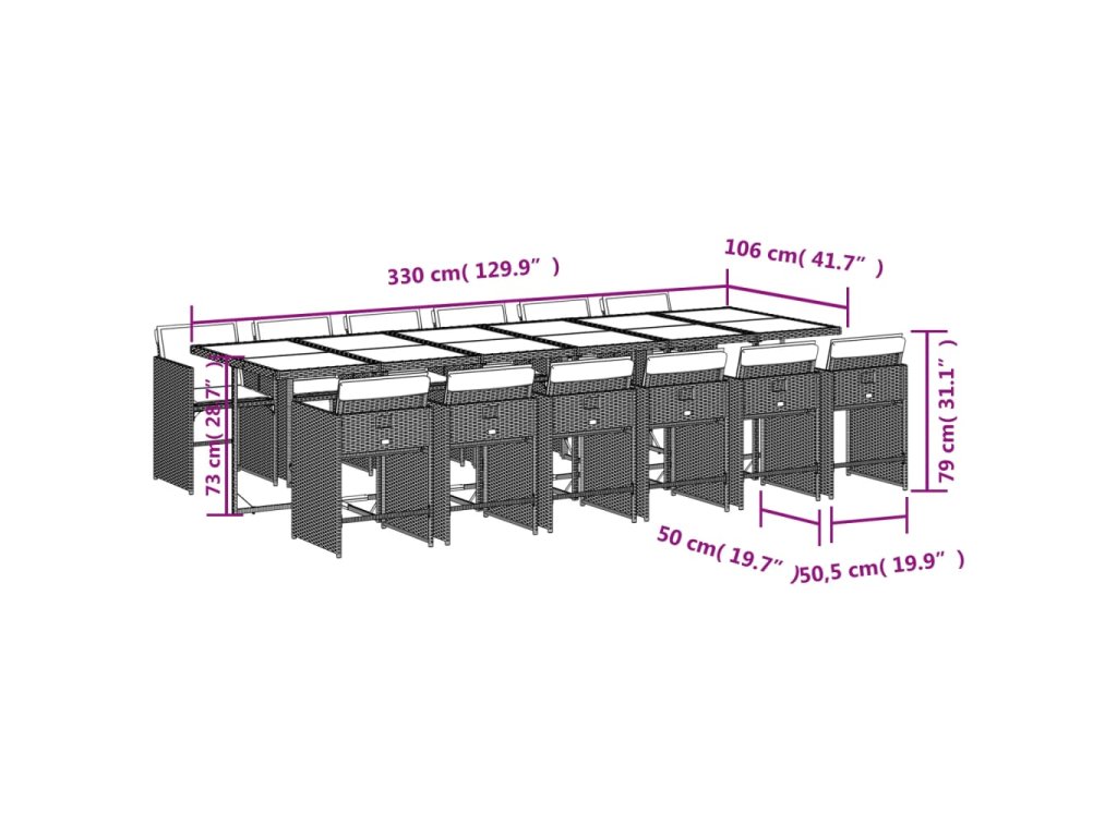 vidaXL 13-dielna záhrad. jedálenská súprava s vankúšmi sivá polyratan