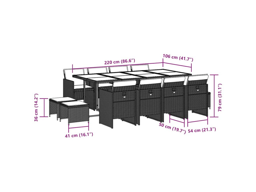 vidaXL 13-dielna záhrad. jedálenská súprava s vankúšmi sivá polyratan