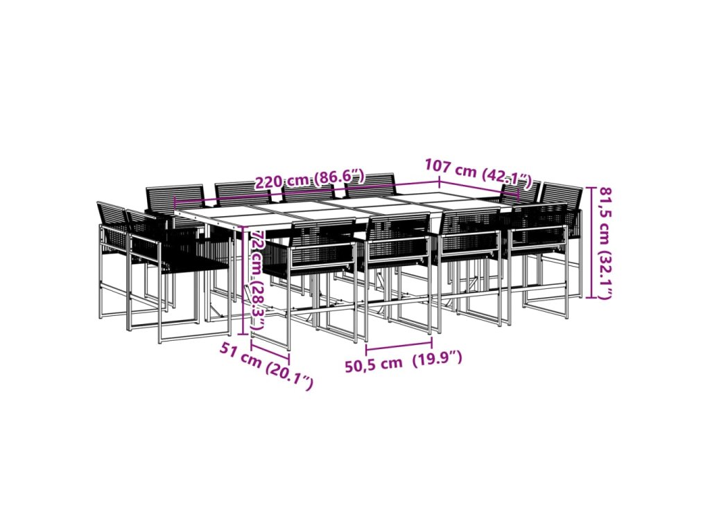 vidaXL 13-dielna záhradná jedálenská súprava čierna polyratan