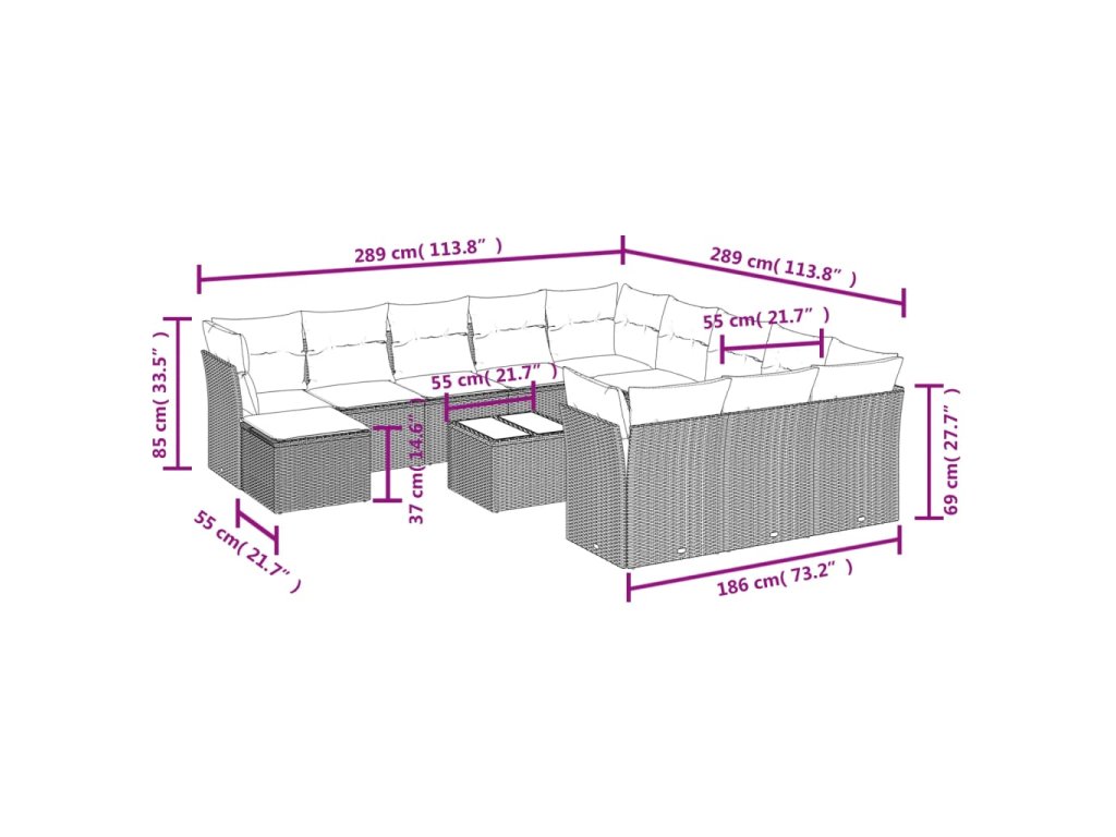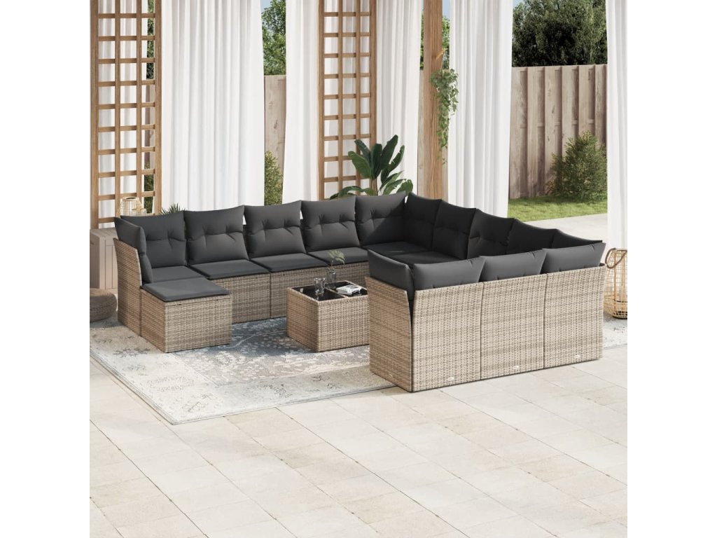 vidaXL 13-dielna záhradná sedacia súprava s vankúšmi sivá polyratanová