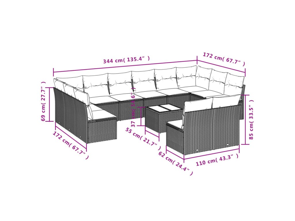 vidaXL 13-dielna záhradná sedacia súprava s vankúšmi sivá polyratanová