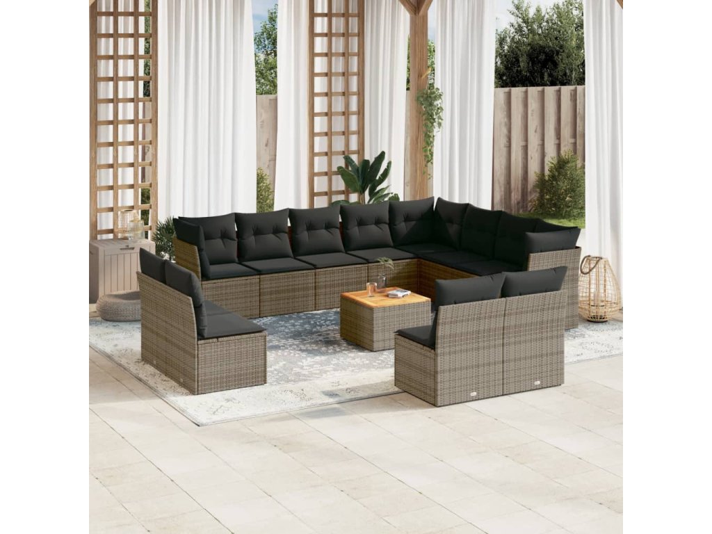 vidaXL 13-dielna záhradná sedacia súprava s vankúšmi sivá polyratanová