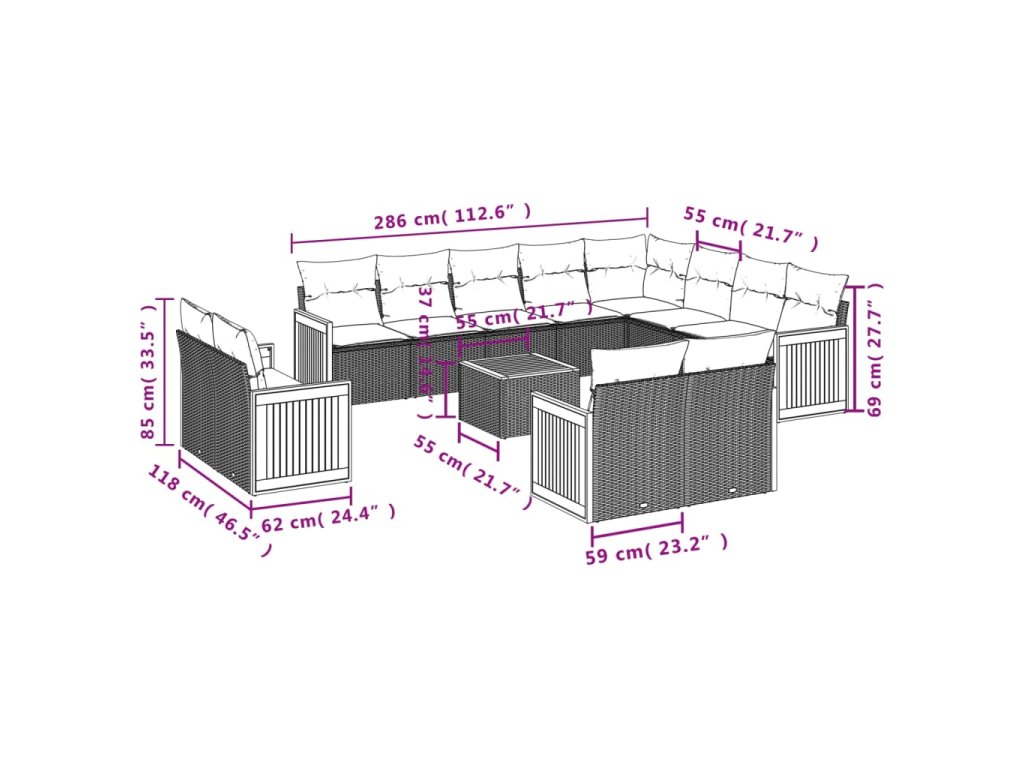 vidaXL 13-dielna záhradná sedacia súprava s vankúšmi sivá polyratanová