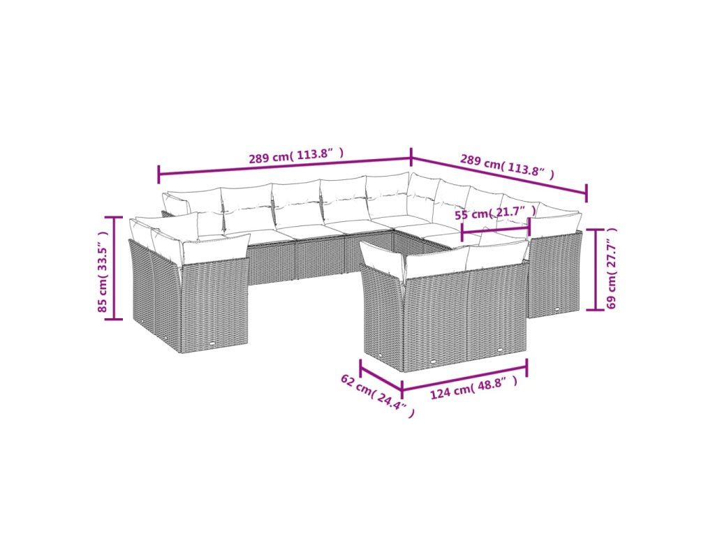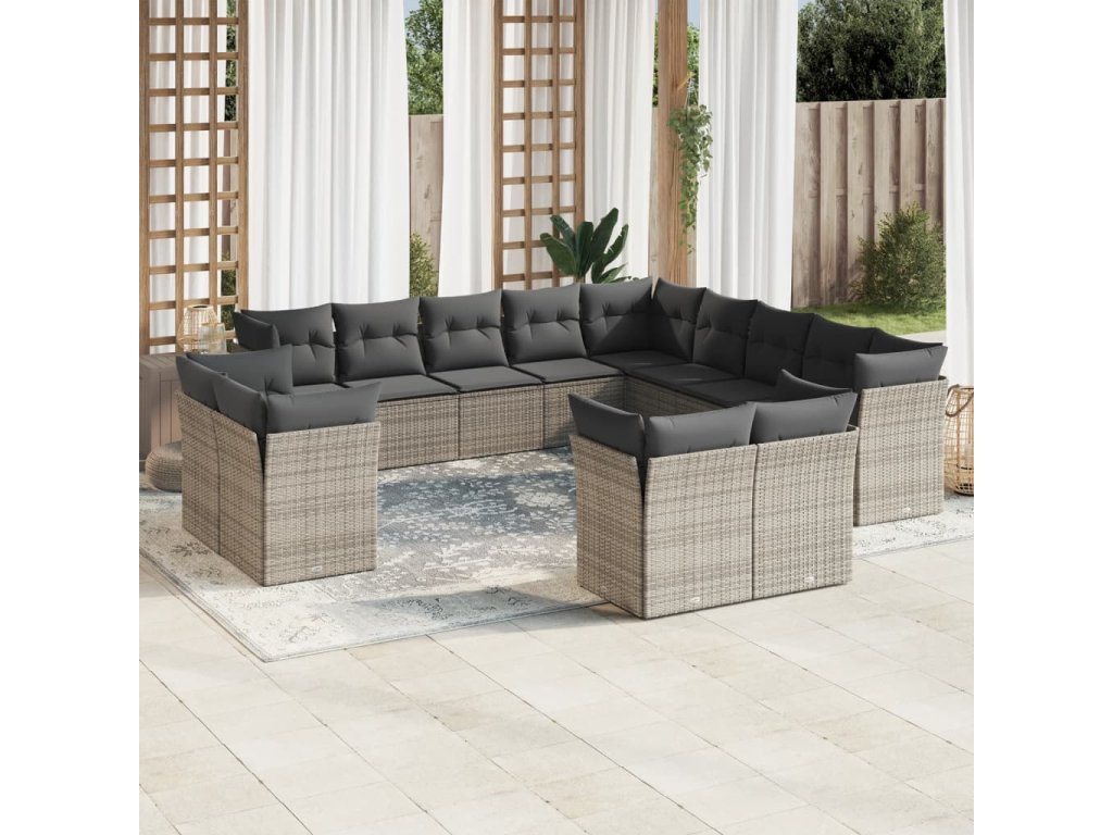 vidaXL 13-dielna záhradná sedacia súprava s vankúšmi sivá polyratanová