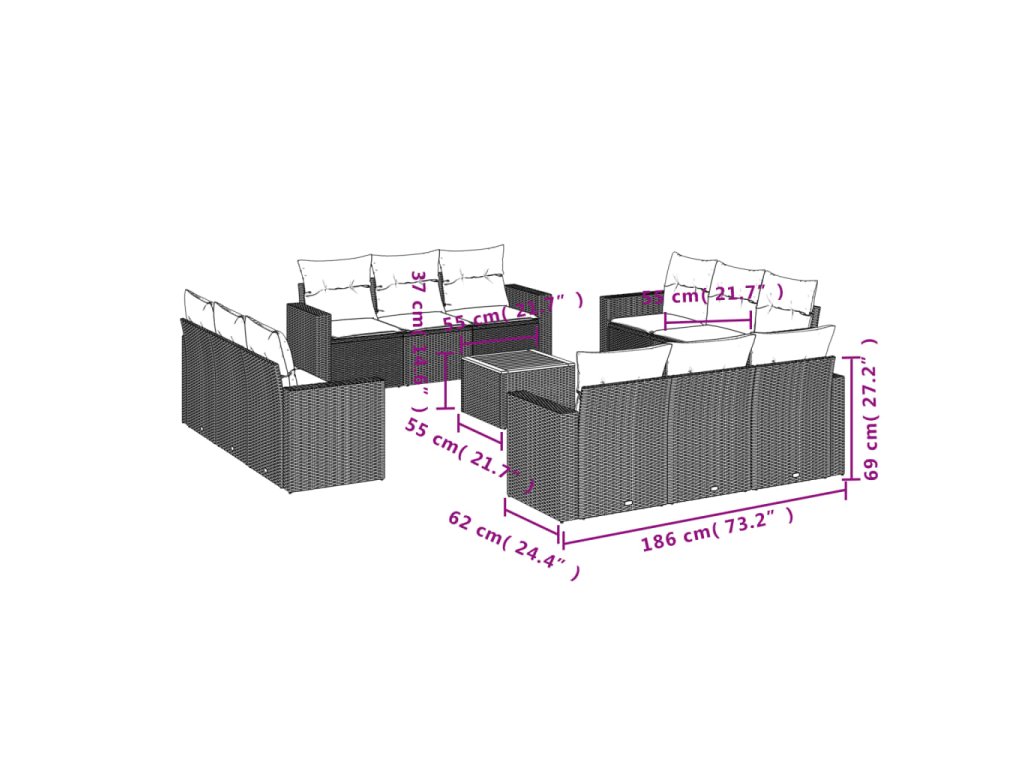 vidaXL 13-dielna záhradná súprava pohoviek s vankúšmi béžová polyratan