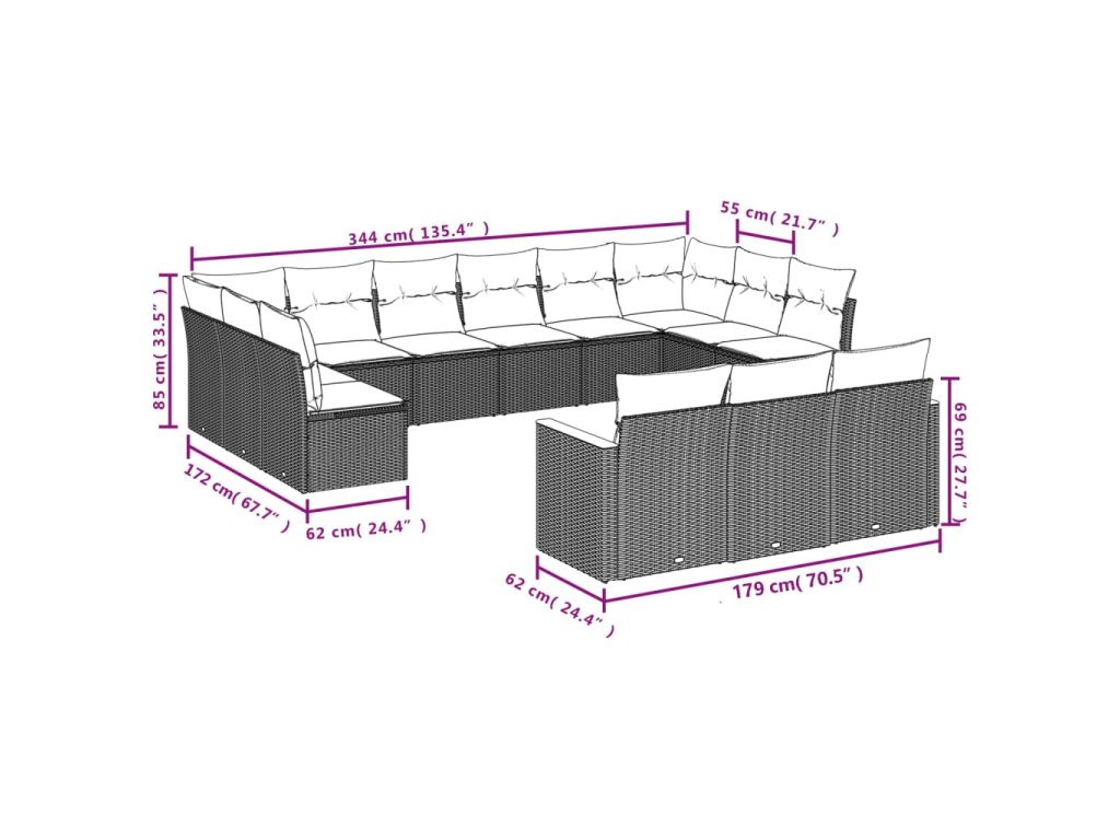 vidaXL 13-dielna záhradná súprava pohoviek s vankúšmi béžová polyratan