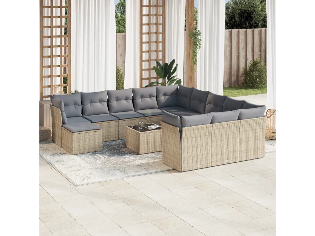 vidaXL 13-dielna záhradná súprava pohoviek s vankúšmi béžová polyratan