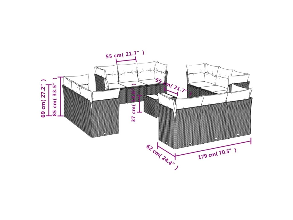 vidaXL 13-dielna záhradná súprava pohoviek s vankúšmi béžová polyratan