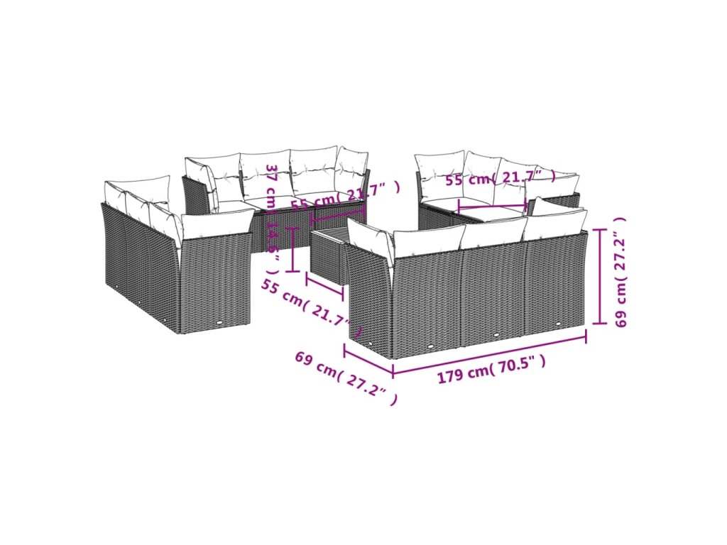 vidaXL 13-dielna záhradná súprava pohoviek s vankúšmi béžová polyratan
