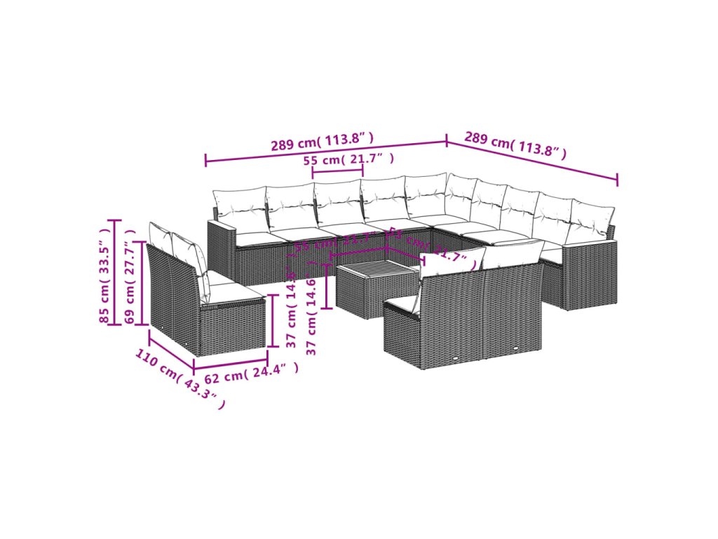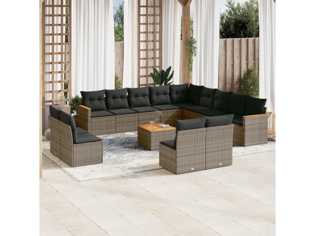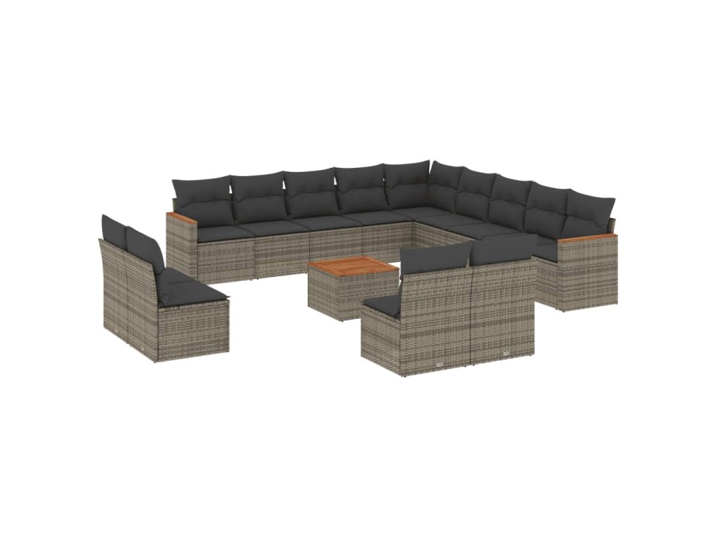 vidaXL 14-dielna záhradná sedacia súprava s vankúšmi sivá polyratan