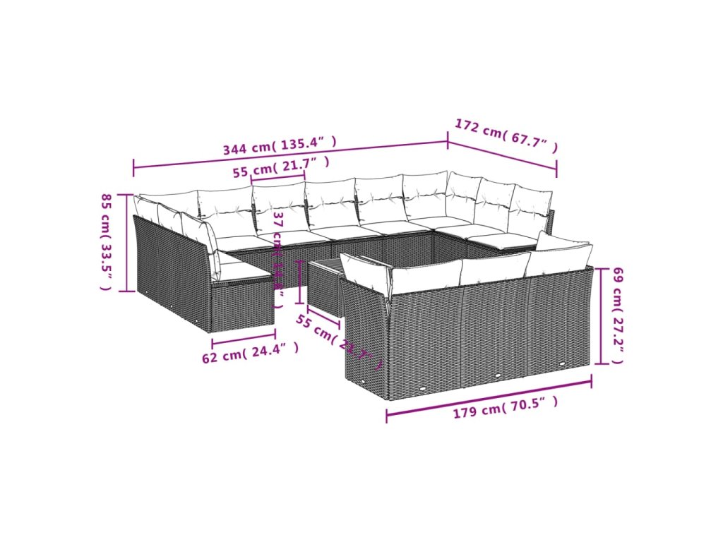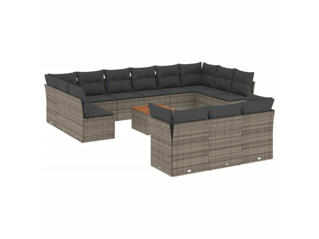 vidaXL 14-dielna záhradná sedacia súprava s vankúšmi sivá polyratan