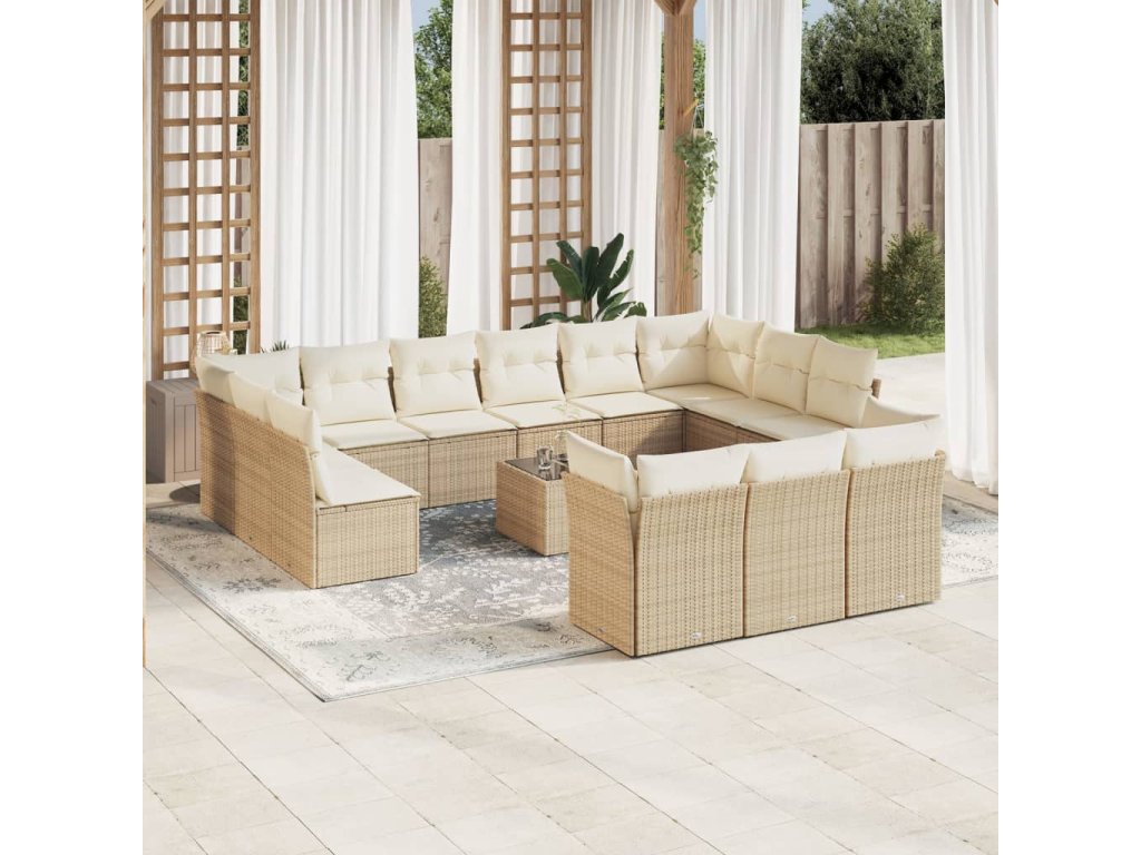 vidaXL 14-dielna záhradná súprava pohoviek s vankúšmi béžová polyratan