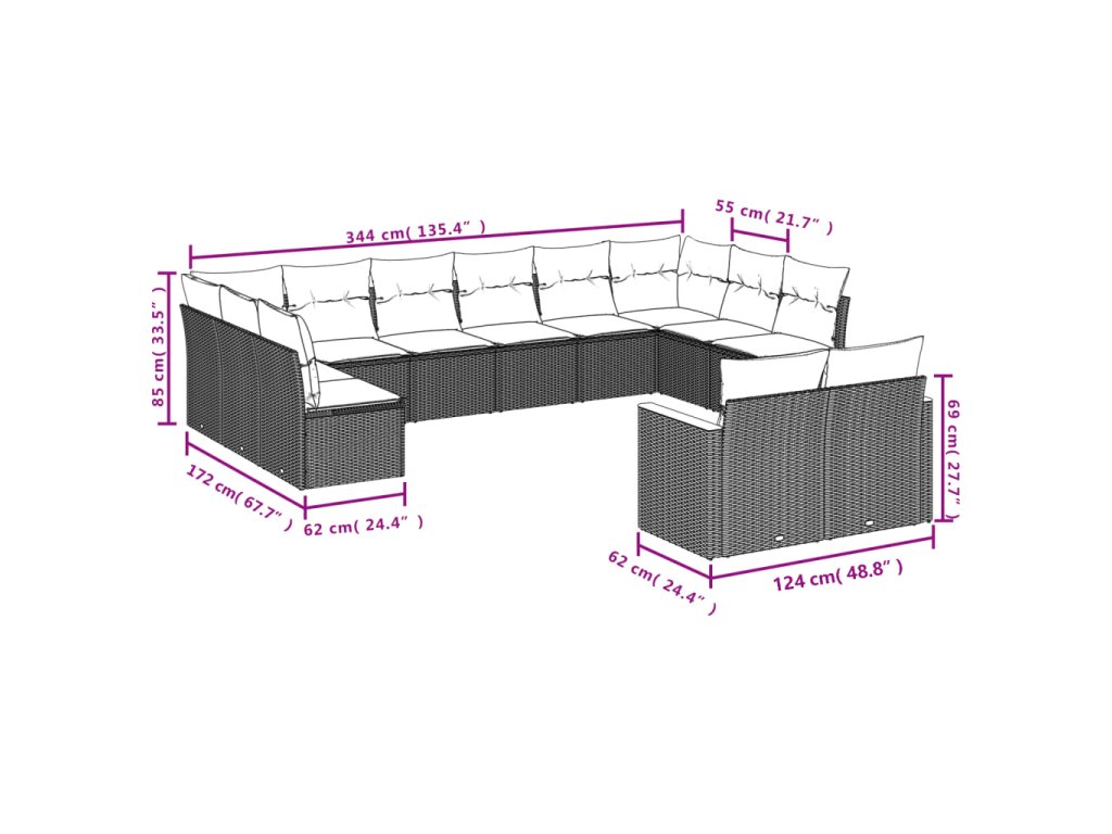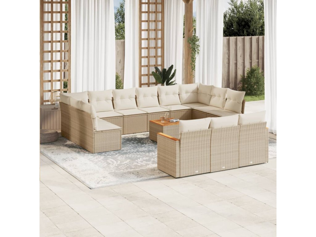 vidaXL 14-dielna záhradná súprava pohoviek s vankúšmi béžová polyratan
