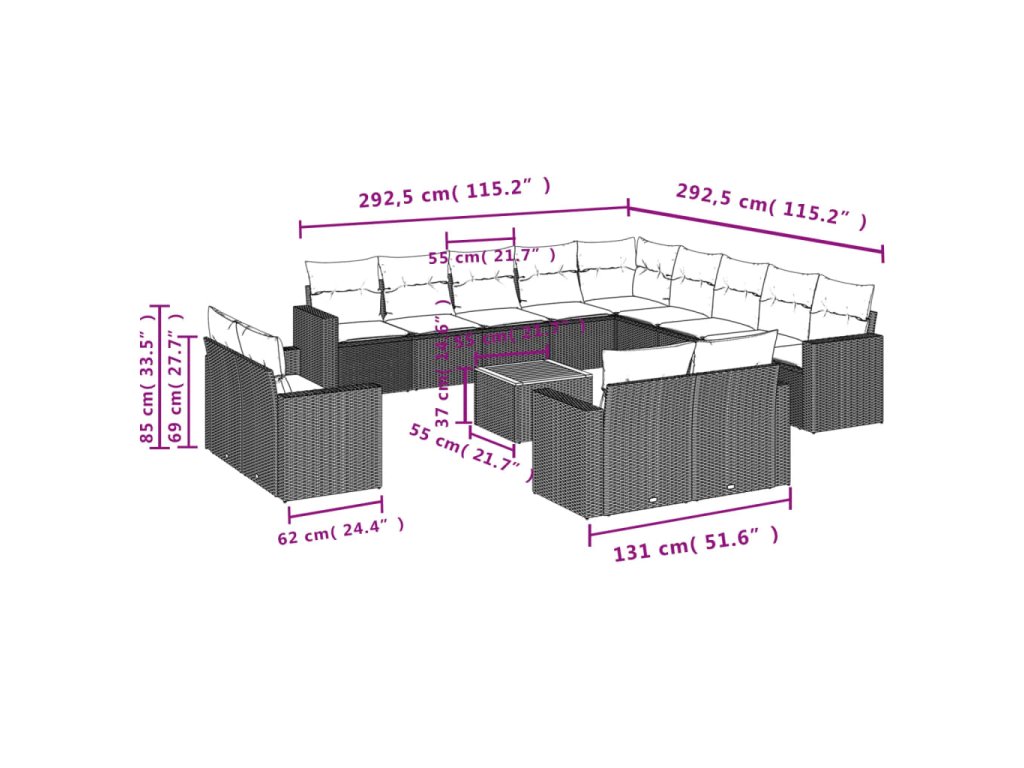 vidaXL 14-dielna záhradná súprava pohoviek s vankúšmi béžová polyratan