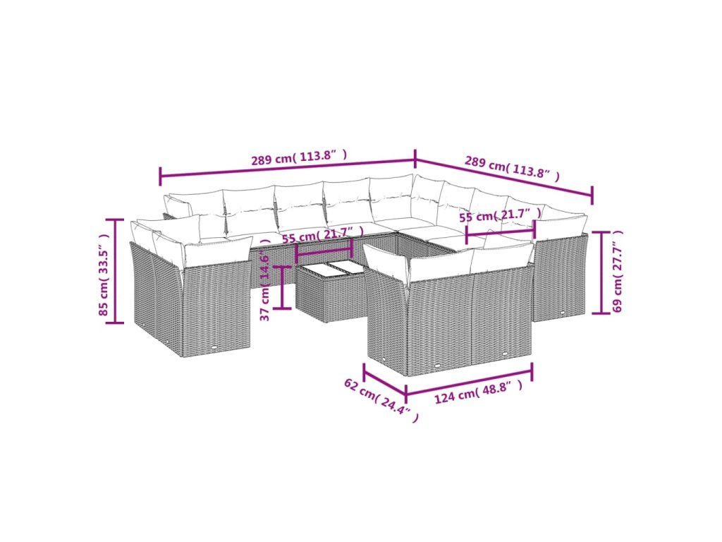vidaXL 14-dielna záhradná súprava pohoviek s vankúšmi béžová polyratan