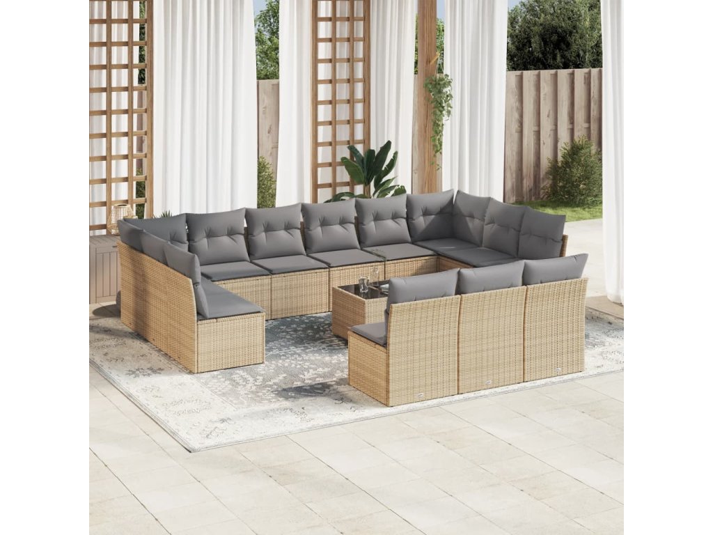 vidaXL 14-dielna záhradná súprava pohoviek s vankúšmi béžová polyratan
