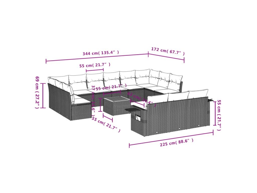 vidaXL 14-dielna záhradná súprava pohoviek s vankúšmi čierna polyratan