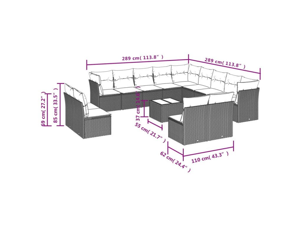 vidaXL 14-dielna záhradná súprava pohoviek s vankúšmi čierna polyratan