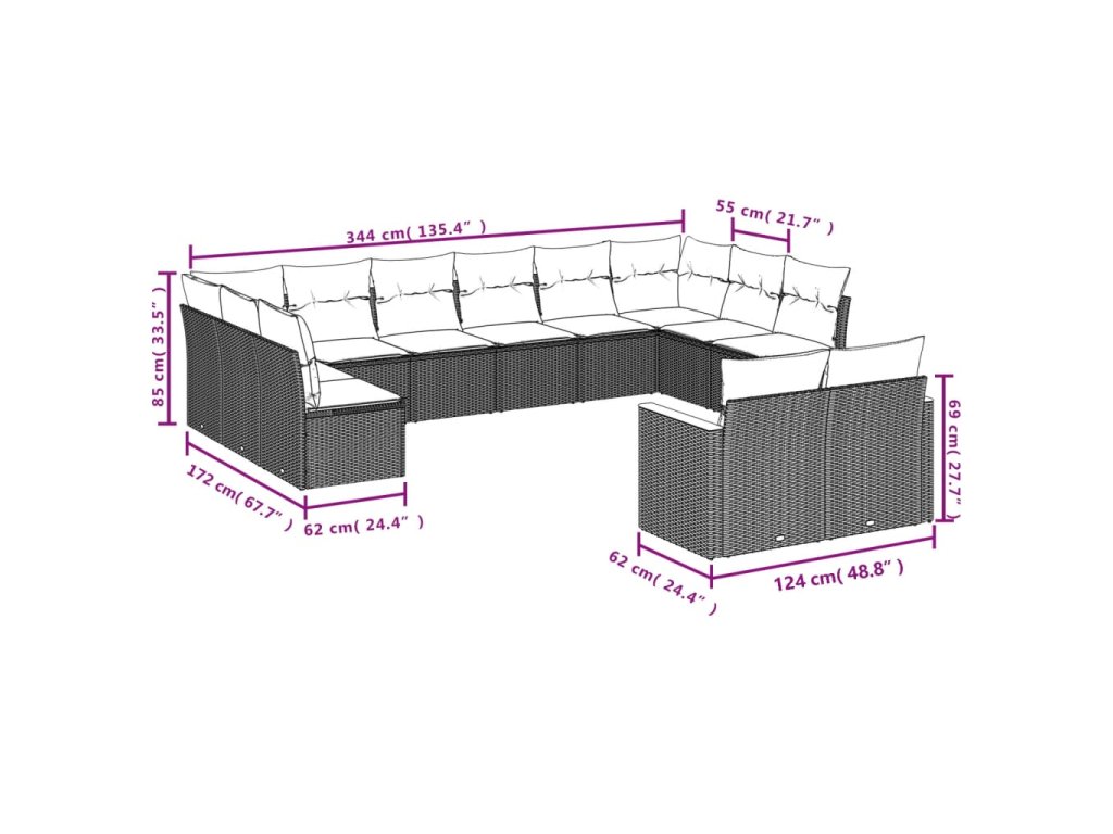 vidaXL 14-dielna záhradná súprava pohoviek s vankúšmi mix béžovej