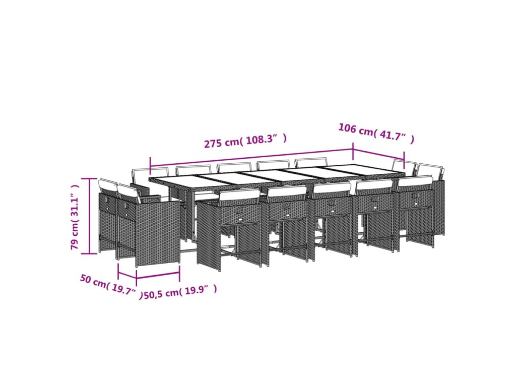 vidaXL 15-dielna záhr.jedálen. súprava s vankúšmi svetlosivá polyratan