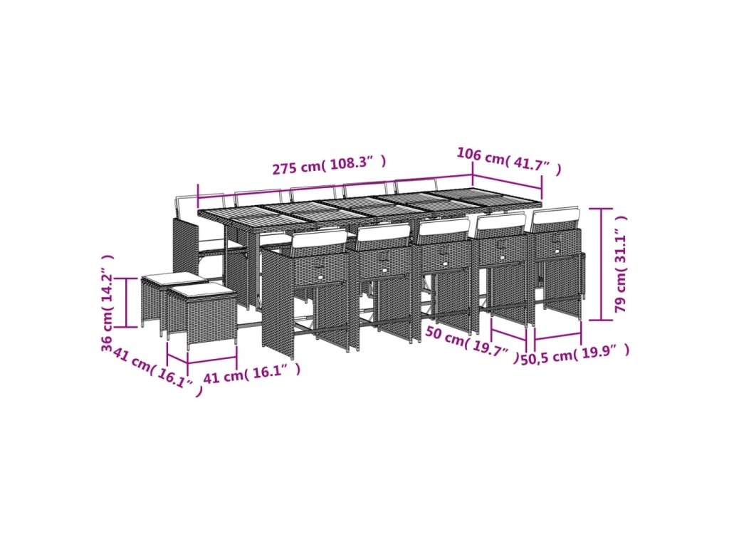 - Materiál: PE ratan, oceľ s práškovou povrchovou úpravou, akáciový masív