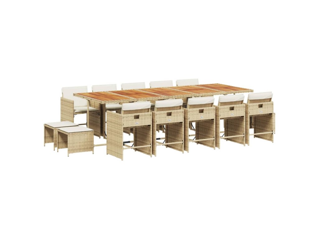 vidaXL 15-dielna záhrad. jedálenská sada s vankúšmi béžová polyratan