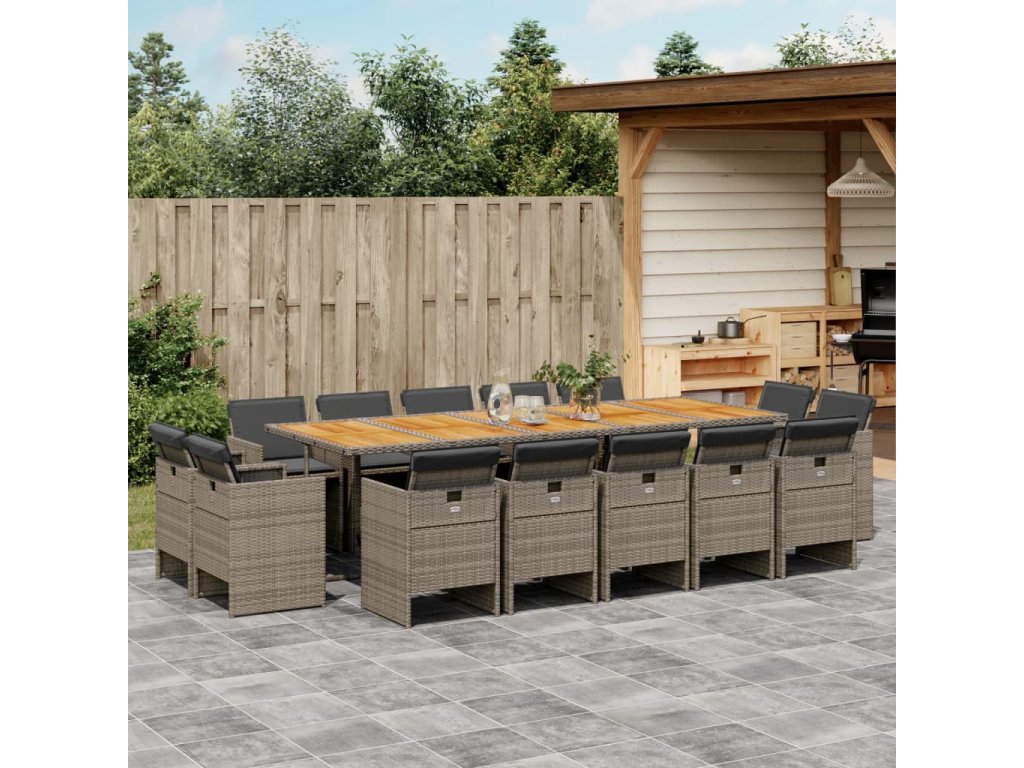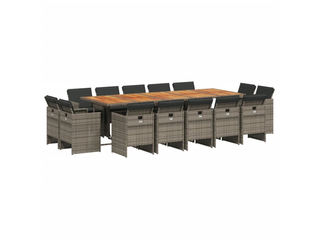 vidaXL 15-dielna záhrad. jedálenská súprava s vankúšmi sivá polyratan