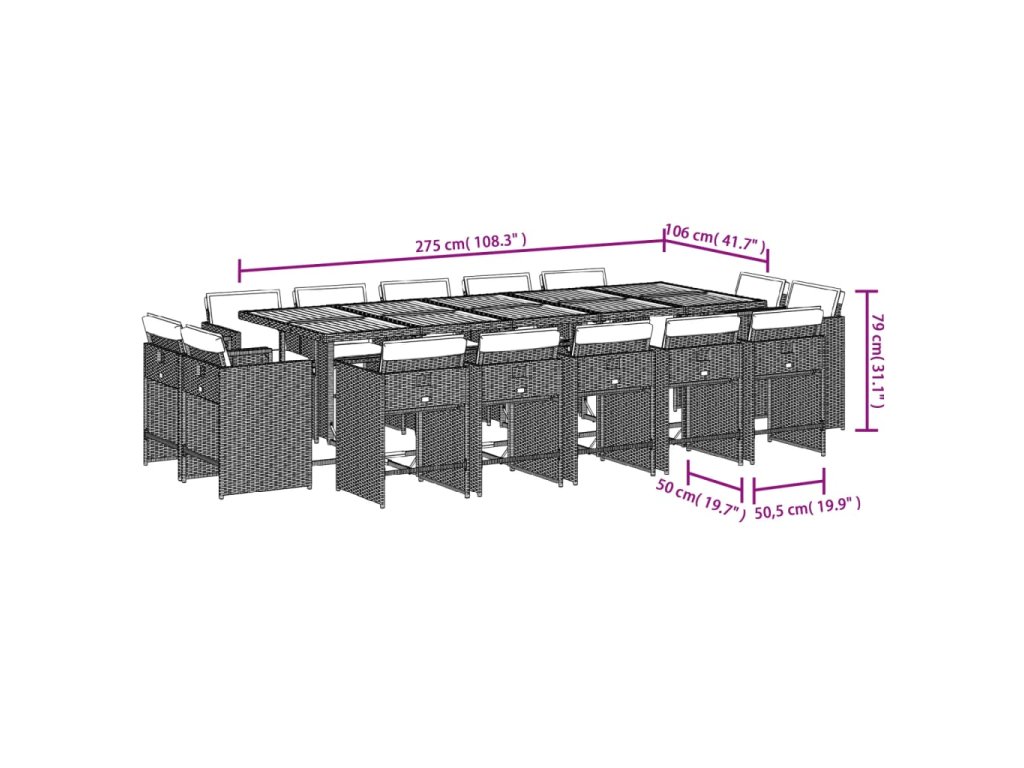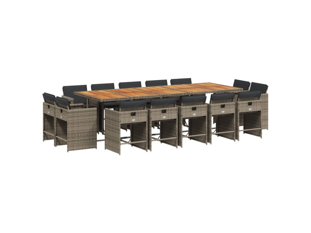 vidaXL 15-dielna záhrad. jedálenská súprava s vankúšmi sivá polyratan