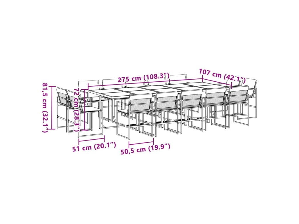 - Rozmery stola: 275 x 107 x 72 cm (D x Š x V)