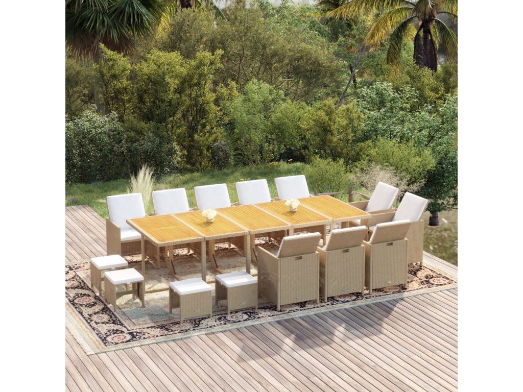 vidaXL 15-dielna záhradná jedálenská súprava vankúše polyratan béžová