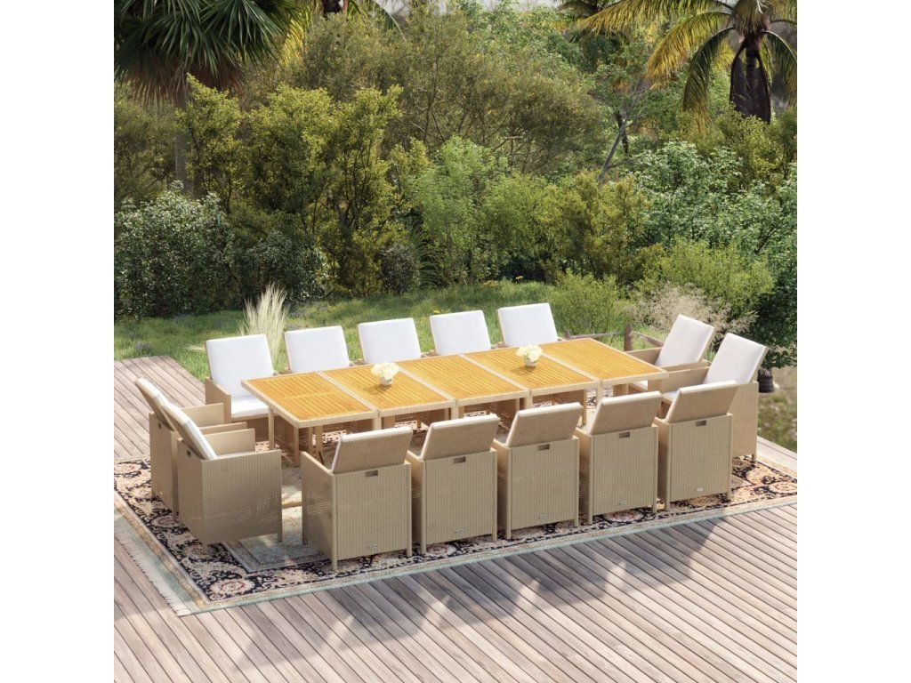 vidaXL 15-dielna záhradná jedálenská súprava vankúše polyratan béžová