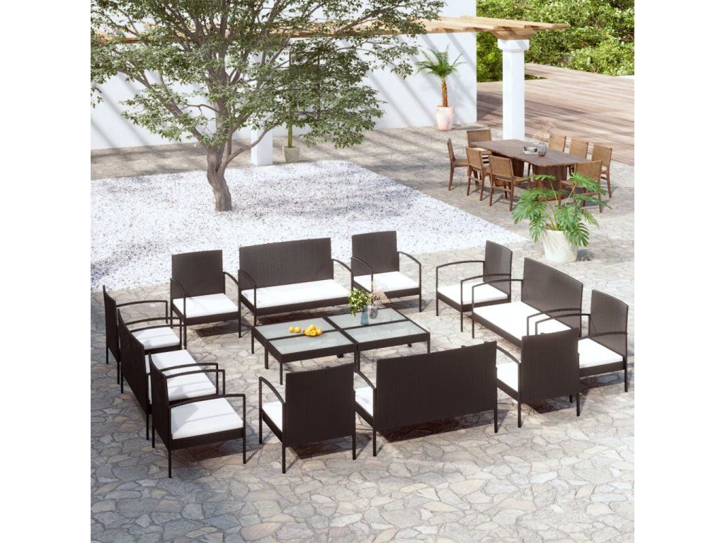 vidaXL 16-dielna záhradná sedacia súprava s podložkami polyratanová čierna