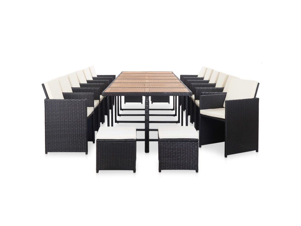 vidaXL 17-dielna vonkajšia jedálenská súprava, polyratan, čierna