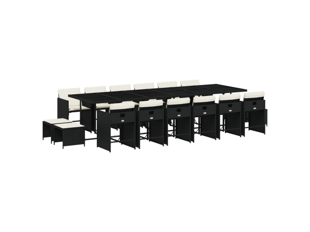 vidaXL 17-dielna záhr. jedálenská súprava s vankúšmi čierna polyratan