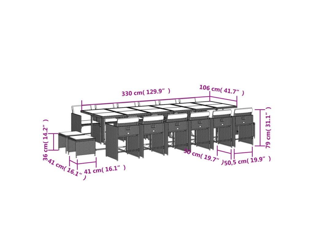 - Rozmery: 330 x 106 x 73 cm (D x Š x V)