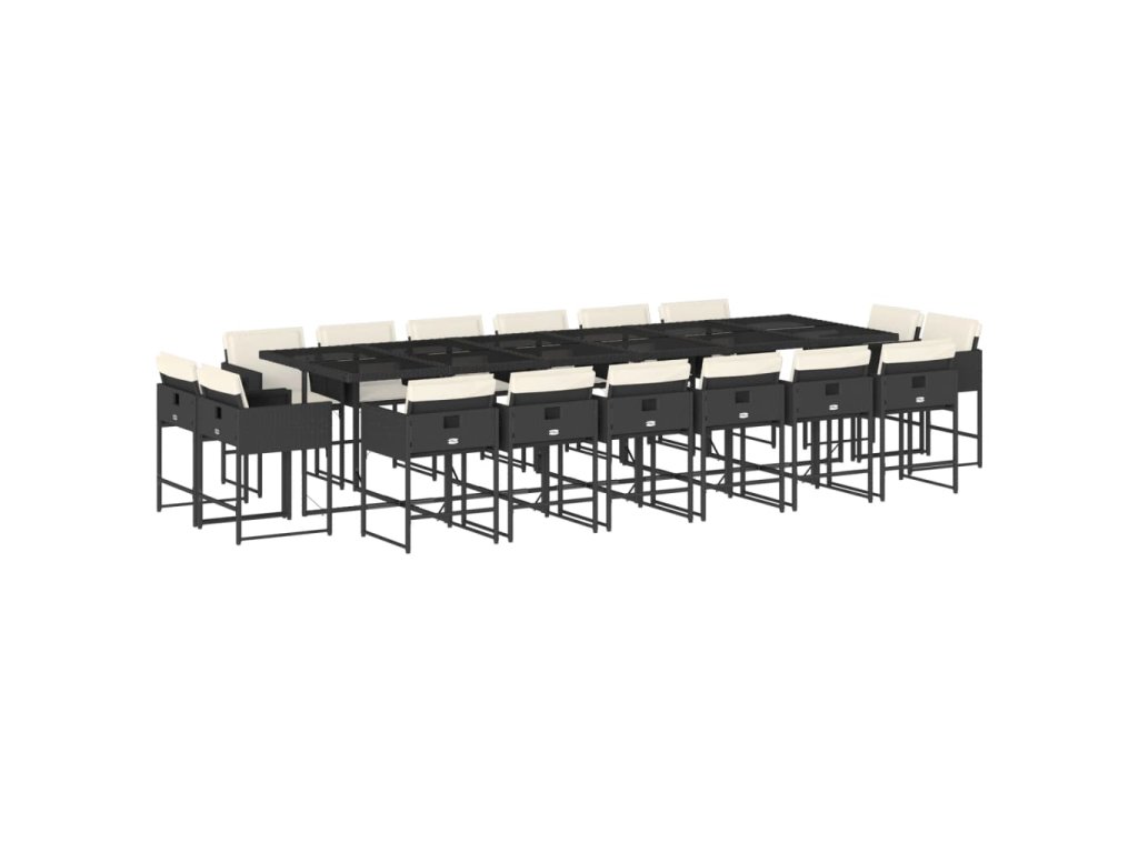 vidaXL 17-dielna záhr. jedálenská súprava s vankúšmi čierna polyratan