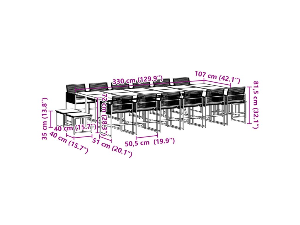- Robustný a stabilný rám: Oceľový rám s práškovým nástrekom zaisťuje, že záhradný nábytok je pevný a stabilný pre každodenné vonkajšie použitie.