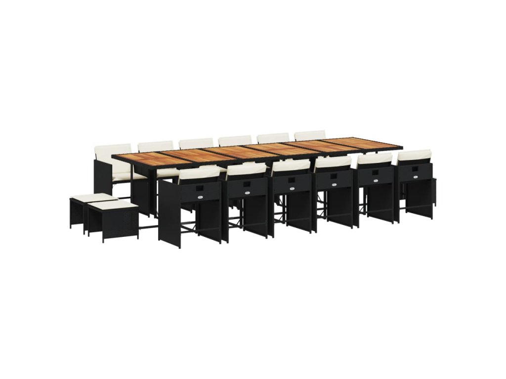 vidaXL 17-dielna záhr. jedálenská súprava s vankúšmi čierna polyratan