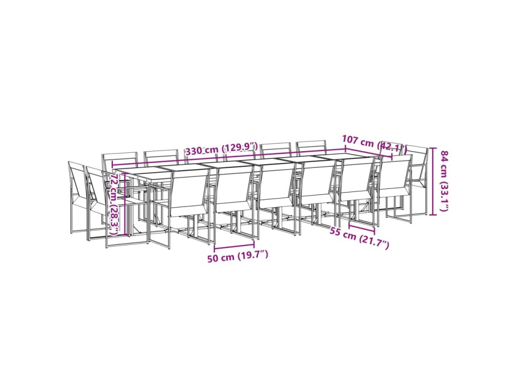 - Rozmery: 330 x 107 x 72 cm (D x Š x V)