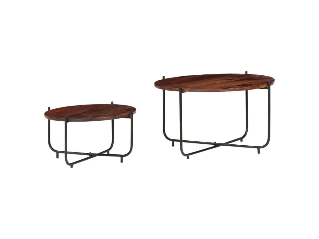 Táto sada sa skladá z 2 konferenčných stolíkov, ktoré sú vyrobené zo sheeshamového masívneho dreva a ocele. Dodá vašej domácnosti nádych starožitného šarmu. Môžu byť tiež použité ako stolíky ku gauču, bočné stolíky, príručné stolíky alebo stolíky do obývačky.