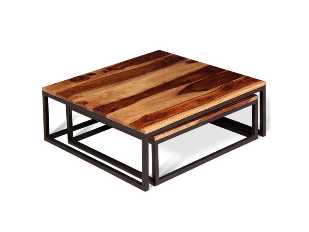 vidaXL 2-dielna sada stohovacích konferenčných stolíkov, sheeshamové drevo